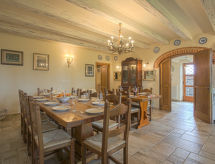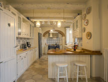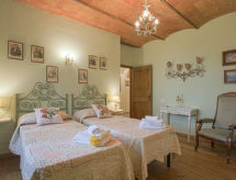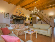 Velika, komforna vila "Montelucci", 650 m n.m., na 2 kata, zasebna, okružena drvećem, poljima i vinogradima. 7 km od centra mjesta Gaiole in Chianti, 11 km od centra mjesta Radda in Chianti, 48 km od centra mjesta Siena, izolirano, povišeno mjesto na brežuljku, u zelenom. Za samostalno korištenje: parcela 10'000 m2 (ograđena), veliki, njegovani vrt - cvijeće i drveće, livada, bazen ograđen (12 x 6 m, 120- 160 cm dubok, sezonska dostupnost: 13.May. - 05.Nov. bazen je otvoren u vremenu: 09:00-20:00). Vanjski tuš, stolni tenis, igralište za odbojku mjesto za sjedenje, sjenica, pergola, terasa, vrtna garnitura za sjedenje, roštilj. Bazen održava vlasnik/vrtlar. U kući: stolni nogomet. Kućna pomoćnica moguća (uz doplatu). Kuhar moguć (uz doplatu). Dostava kruha. Moguća dostava namirnica prije dolaska. Prilaz autom (600 m bijela cesta). Parking na parceli. Supermarket 7 km, restoran 2 km, željeznička postaja "Montevarchi" 16 km, natkriveni bazen 15 km. Golf teren (3 rupa) 10 km, jahanje konja 3 km, pješačke staze od kuće 200 m. U blizini: Firenze 60 km, Badia a Coltibuono 13.2 km, Castello di Brolio 18 km, Volpaia 15.3 km, Vertine 9 km, Arezzo 51 km. Pješačke staze: Parco Naturale Cavriglia 17 km, Sentiero di Castagnoli 10 km. Dodatna informacija: preporučljiv vlastiti prijevoz. Prikladno za obitelji, oprema za bebe (uklj.). Objekt pogodan za 14 odraslih grupe mladih samo na upit. Prikladno za evente. Mogućnost rezerviranja tečaja kuhanja. Moguće je na upit organizirati transfer od aerodroma do objekta. Prodaja domaćih poljoprivrednih proizvoda.Interior