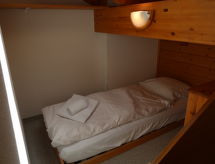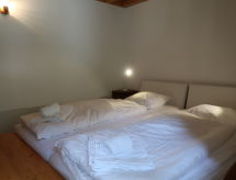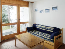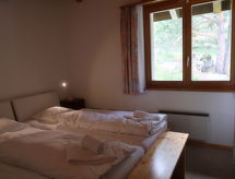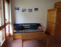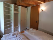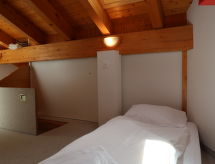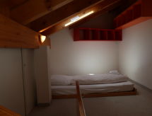 "Mont-Fort C1", 3 -sobni apartman 76 m2 na 3 etaže. Spušten strop, jednostavno uređen: dnevno-spavaća soba s 1 kaučem za 2 osobe (2 x 80 cm, dužina 180 cm), stolom za blagovanje, kabelskom TV i DVD-om. Izlaz na terasu, prema istoku. Otvorena kuhinja (pećnica, 4 staklokeramičke ploče za kuhanje, toster, el. aparat za kavu, raclette roštilj, set za fondue (sir)). Kada/WC. El. grijanje. Gornji kat: 1 soba s 2 kreveta (90 cm, dužina 200 cm). Tuš/WC. El. grijanje. Potkrovlje (stepenice bez rukohvata) 1 soba s kosim stropom, visina stropa 100 - 260 cm s 2 ležaja (90 cm, dužina 190 cm). Terasa. Dodatna informacija: apartman za nepušače.- Značajke smještaja