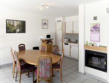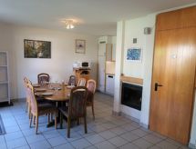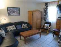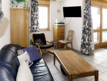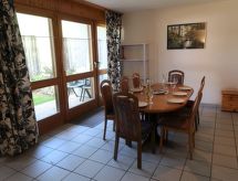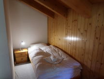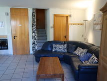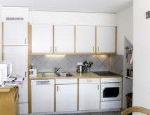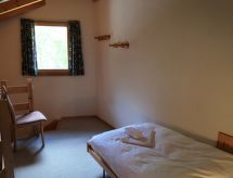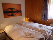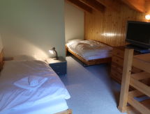 4 -sobni apartman 102 m2 na 3 etaže. Svrsishodno i lijepo uređen: dnevni boravak/blagovaona s otvorenim kaminom i kabelskom TV. Izlaz na terasu. Otvorena kuhinja (pećnica, perilica za suđe, 4 staklokeramičke ploče za kuhanje, toster, kuhalo za vodu, mikrovalna pećnica, el. aparat za kavu, Doze za mašinu za kavu (Delizio) uz doplatu, raclette roštilj, set za fondue (chinoise, sir)). Tuš/WC. Gornji kat: 1 soba s 2 kreveta (80 cm, dužina 200 cm). 1 soba s 2 x 2 kreveta na kat (90 cm, dužina 200 cm). Kada/WC. El. grijanje. Potkrovlje 1 otvorena soba s kosim stropom s 2 kreveta (80 cm, dužina 200 cm). Terasa, prema sjeveru i prema istoku. Garnitura za sjedenje. Pogled na planine. Na raspolaganju: sušilo za kosu. Internet (wireless LAN [WLAN], besplatan). Dodatna informacija: apartman za nepušače.- Značajke smještaja