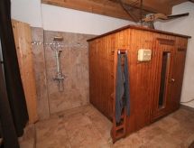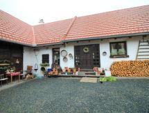 6 -sobna obiteljska kuća 250 m2 na 2 etaže. Objekt pogodan za 5 + 1 dijete. Prostrano, rustikalno i stilski uređena: predsoblje. 1 mala soba s 1 krevetom i el. grijanjem. Otvoreni veliki dnevni boravak/blagovaona s stolom za blagovanje, TV-om, međunarodnim TV kanalima, plosnatim TV ekranom, el. grijanjem i kaljevom peći. Veliki, 1 velika bračna soba s 1 bračnim krevetom, el. grijanjem i kaljevom peći. Velika kuhinja/dn. boravak (4 ploče za kuhanje, perilica za suđe, toster, kuhalo za vodu, el. aparat za kavu) s stolom za blagovanje. Kada/tuš, odv. WC, Sauna. El. grijanje, grijanje na drva (uz doplatu). Gornji kat: 1 velika bračna soba s kosim stropom s 1 bračnim krevetom i el. grijanjem. Komforno uređeno u ladanjskom stilu. Mala terasa. Garnitura za sjedenje, vrtni roštilj. Lijep pogled na vrt i šumu. Na raspolaganju: perilica za rublje, sušilica, sauna, visoka dječja stolica, dječji krevetić, drvo (uz doplatu). Internet (wireless LAN [WLAN], besplatan). Dodatna informacija: prikladno za obitelji. Kuća za nepušače. Najviše 5. Vlastiti ulaz, protupožarni alarm, vatrogasni aparat.- Značajke smještaja