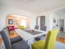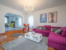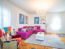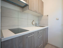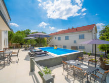 Klenovica 8 km od mjesta Novi Vinodolski: Obiteljska kuća "My Day House", na 2 kata. 600 m od centra mjesta Klenovica, mirno, sunčano, povišeno mjesto, 350 m od mora, 350 m od plaže, u slijepoj ulici. Za samostalno korištenje: parcela 1'000 m2 (ograđena) - travnjak 80 m2 bilje, bazen pravokutni (8 x 4 m, 150 cm dubok, sezonska dostupnost: 01.May. - 30.Sep.) s unutarnjim stepenicama. Vanjski tuš, terasa (150 m2), vrtna garnitura za sjedenje, roštilj. U kući: pristup internetu, perilica za rublje. Parking (za 6 automobila) uz kuću na parceli. Trgovina, restoran 600 m, šljunčana plaža 350 m. Grupe mladih samo na upit. Grupe mladih polažu pri dolasku dvostruki depozit. Kuća se sastoji od 3 apartmana koji se iznajmljuju kao cjelina.Interior