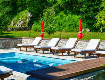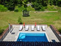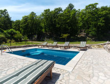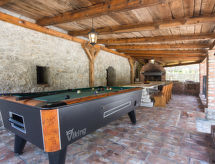 Obiteljska kuća "Natura (OPA150)", na 2 kata. Iznad mjesta Ičići, u zaseoku Puhari 9 km od centra mjesta Lovran, 8 km od centra mjesta Ičići, 9 km od centra mjesta Opatija, 8 km od mora. Za samostalno korištenje: parcela 4'200 m2 - travnjak i drveće, bazen (24 m2, 120 cm dubok, sezonska dostupnost: 02.May. - 07.Oct.). Vanjski tuš, terasa, vrtna garnitura za sjedenje, roštilj. U kući: pristup internetu, biljar, trampolin, perilica za rublje. Parking (za 4 automobila) na parceli. Trgovina 4 km, supermarket 8 km, šljunčana plaža 8 km. Vlasnik ne prihvaća grupe mladih. Smještajna jedinica se sastoji od 2 zasebne kuće koje se iznajmljuju kao cjelina.Interior