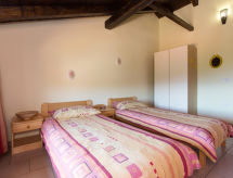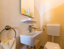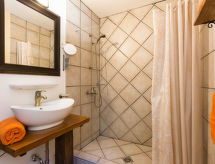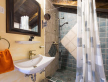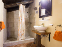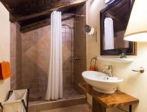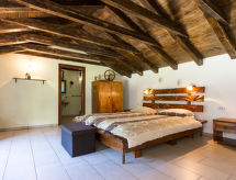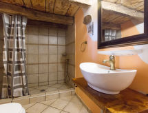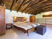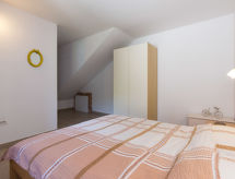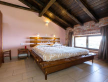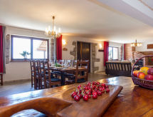 7 -sobna kuća 390 m2 na 2 etaže. Dnevni boravak/blagovaona s otvorenim kaminom i TV-om sa sat. prijemnikom (plosnatim TV ekranom). Izlaz na balkon. 1 soba s 1 bračnim krevetom i tušem/WC-om. Dnevni boravak/blagovaona s otvorenim kaminom i TV-om sa sat. prijemnikom (plosnatim TV ekranom). Otvorena kuhinja (4 ploče za kuhanje, perilica za suđe, zamrzivač, el. aparat za kavu). Odv. WC. Gornji kat: 1 soba s 1 bračnim krevetom, tušem/WC-om i klima uređajem. 1 soba s 1 franc. krevetom (180 cm, dužina 200 cm), tušem/WC-om i klima uređajem. 1 soba s 2 kreveta i klima uređajem. 1 otvorena soba s 1 kaučem za 2 osobe, tušem/WC-om i klima uređajem. Tuš/WC. Balkon, terasa 40 m2 (natkrita). Garnitura za sjedenje, ležaljke. Pogled u daljini na more. Na raspolaganju: sef, glačalo, dječji krevetić. Internet (wireless LAN [WLAN], besplatan). Najviše 1 kućni ljubimac / pas dozvoljen. Jedna kuća s dnevnim boravkom / blagovaonom, otvorenom kuhinjom i spavaćom sobom u prizemlju i 3 spavaće sobe na gornjem katu. Druga kuća s dnevnom sobom / blagovaonom u prizemlju i 1 spavaćom sobom na gornjem katu.- postrojenja