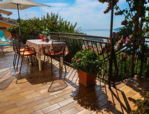 "Neda (RAC134)", 3 -sobni apartman 55 m2, u prizemlju. Dnevni boravak/blagovaona s TV-om sa sat. prijemnikom i klima uređajem. Izlaz na terasu. 1 soba s 2 kreveta. 1 soba s 1 bračnim krevetom. Otvorena kuhinja (1 ploča za kuhanje, pećnica, 3 plamena za kuhanje, toster, kuhalo za vodu, mikrovalna pećnica, zamrzivač, el. aparat za kavu). Kada/bidet/WC. Terasa 30 m2. Garnitura za sjedenje, vrtni roštilj (prijenosni), ležaljke (4). Pogled na more. Na raspolaganju: perilica za rublje, glačalo, dječji krevetić do 2 godine (uz doplatu). Internet (wireless LAN [WLAN], besplatan). Dodatna informacija: kuća za nepušače. Vlastiti ulaz.- postrojenja