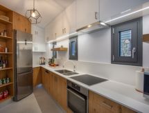 Chavgas 10 km od mjesta Elounda: Vrlo moderna, lijepa vila "Nesea", 160 m n.m., na 3 kata, zasebna, godina izgradnje 2021, okružena drvećem. Na rubu mjesta, 5 km od centra mjesta Plaka, mirno, sunčano mjesto na brežuljku, zona s malo prometa, 5 km od mora, 5 km od plaže. Za samostalno korištenje: parcela 260 m2 (ograđena), mali vrt - drveće, dvorište, bazen pravokutni, zaklonjen od pogleda (3 x 6 m, 150 cm dubok, sezonska dostupnost: 01.Apr. - 31.Oct.) s unutarnjim stepenicama i čišćenje bazena elektrolizom soli. Vanjski tuš. Promjena posteljine - 2 puta tjedno. Promjena ručnika - 2 puta tjedno. Čišćenje apartmana - 2 puta tjedno. Parking uz kuću. Trgovina živežnim namirnicama 5 km, supermarket 5 km, restoran 2 km, cafe 2 km, šljunčana plaža "Plaka Beach" 5 km, ronilački centar 15 km. Škola jedrenja na dasci 16 km, jahanje konja 7 km. U blizini: Spinalonga Island 4 km, Havgas Gorges 2 km, Watersport Elounda 7 km. Poznata jezera u blizini: Voulismeni 15 km. Dodatna informacija: preporučljiv vlastiti prijevoz. Prikladno za obitelji, oprema za bebe na upit (uklj.). Grupe mladih samo na upit. Apartman se nalazi u zoni s ograničenim prometnim prilazom.Interior