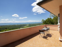 Vrlo lijepa, luksuzna vila "Nicoletta", 500 m n.m., zasebna, okružena drvećem. U centru mjesta San Lorenzo Nuovo 11 km od centra mjesta Bolsena, na brežuljku, u četvrti s vilama. Za samostalno korištenje: vrt 2'000 m2 (ograđen) cvijeće i drveće, bazen (12 x 6 m, 140 cm dubok, sezonska dostupnost: 15.May. - 30.Sep.) s morskom vodom. Vanjski tuš, stolni tenis, vrtna garnitura za sjedenje, roštilj. Čišćenje apartmana moguće (uz doplatu). Kuhar moguć. Parking (za 2 automobila, natkriti) uz kuću. Punionica za električna vozila. Trgovina živežnim namirnicama 260 m, restoran, bar 100 m, pješčana plaža "Marina di Montalto" 50 km, plaža s travom 6 km, park " naturale della Val D'orcia" 50 km, termalno kupalište "Sorano" 25 km, jezero za kupanje "Bolsena" 6 km. Golf teren (9 rupa) 6 km. U blizini: Grotte di Castro 4 km, Civita di Bagnoregio 23 km, Orvieto 25 km, Pitigliano 25 km, San Casciano Dei Bagni 31 km. Dodatna informacija: preporučljiv vlastiti prijevoz. Grupe mladih samo na upit. Residence s električnom kapijom.Interior