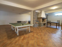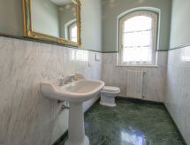 8 -sobna vila 500 m2 na 3 etaže. Vrlo lijepo i luksuzno uređena: predsoblje. Otvoreni veliki dnevni boravak/blagovaona s panoramskim prozorom s otvorenim kaminom. Izlaz u vrt, na lođu. Dnevni boravak s panoramskim prozorom s otvorenim kaminom. Dnevni boravak s TV-om sa sat. prijemnikom, plosnatim TV ekranom, muzičkom linijom i DVD-om. 1 bračna soba. Kuhinja (5 pećnica, mikrovalna pećnica, zamrzivač) s stolom za blagovanje. Izlaz u vrt. Tuš/bidet/WC, odv. WC. Donji kat: velika soba za igru s otvorenim kaminom, stolom za blagovanje, kuhinjskim blokom i tušem/bidetom/WC-om. Izlaz u vrt. Gornji kat: 1 velika bračna soba s panoramskim prozorom Garderoba s kadom/bidetom/WC-om, duplim umivaonikom, hidromasažna kada i klima uređajem. Izlaz na terasu. 1 bračna soba s panoramskim prozorom s klima uređajem. 1 soba s 1 krevetom. Tuš/bidet/WC. Grijanje na plin. Grijanje na raspolaganju samo od 01.11. do 15.04. Balkonski namještaj. Prekrasan panoramski pogled na jezero i dolinu. Na raspolaganju: perilica za rublje, sušilo za kosu. Internet (wireless LAN [WLAN]). Garaža (2 automobili).- Značajke smještaja