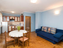 "Nikol (CKV120)", 2 -sobni apartman 35 m2 na 1. katu. Dnevni boravak/blagovaona s 1 kaučem za 2 osobe (160 cm, dužina 200 cm), TV-om sa sat. prijemnikom i klima uređajem. Izlaz na balkon. 1 soba s 1 bračnim krevetom (2 x 80 cm, dužina 200 cm). Otvorena kuhinja (1 ploča za kuhanje, 3 plamena za kuhanje, toster, kuhalo za vodu, mikrovalna pećnica, zamrzivač, el. aparat za kavu). Tuš/WC. Grijanje (uz doplatu), klima uređaj (uz doplatu). Balkon. Balkonski namještaj. Na raspolaganju: Internet (wireless LAN [WLAN], besplatan). Dodatna informacija: kuća za nepušače. Najviše 2 kućna ljubimca / psa dozvoljena.- postrojenja