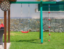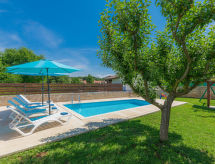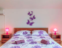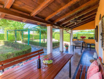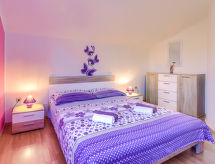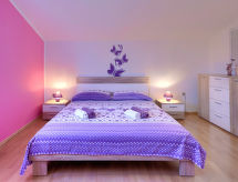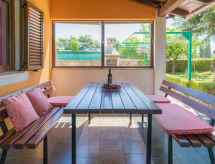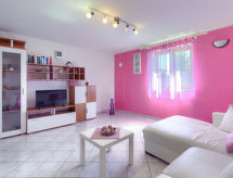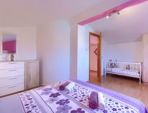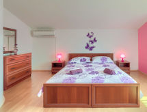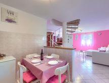 3 -sobna kuća 90 m2 na 2 etaže. Svijetlo: dnevni boravak/blagovaona s 1 kaučem za 1 osobu i TV-om sa sat. prijemnikom. Izlaz na terasu. Mala, otvorena kuhinja (2 ploče za kuhanje, pećnica, toster, kuhalo za vodu, mikrovalna pećnica, zamrzivač, el. aparat za kavu). Kada/WC. Grijanje, klima uređaj. Gornji kat: (kružne stepenice) 1 soba s 1 franc. krevetom (160 cm). 1 soba s 1 kaučeva za 1 osobu i 1 franc. kreveta (160.'00 cm). Ležaljke. Na raspolaganju: visoka dječja stolica, dječji krevetić. Internet (wireless LAN [WLAN], besplatan). 2 kućna ljubimca / psa dozvoljena.- postrojenja