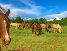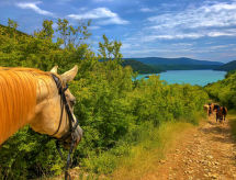 5 -sobni apartman 134 m2 na 1. katu. Lijepo i udobno uređen: dnevni boravak/blagovaona 60 m2 s TV-om sa sat. prijemnikom (plosnatim TV ekranom), klima uređajem. 2 sobe, svaka soba s 1 franc. krevetom (160 cm, dužina 200 cm). 2 sobe, svaka soba s 2 kreveta (90 cm, dužina 200 cm). Otvorena kuhinja (4 ploče za kuhanje, pećnica, perilica za suđe, mikrovalna pećnica, zamrzivač, el. aparat za kavu). Kada/bidet/WC, tuš/WC. Pogled na krajolik. Na raspolaganju: perilica za rublje, sef, dječji krevetić, sušilo za kosu. Internet (wireless LAN [WLAN], besplatan).- Aktivnosti u blizini
