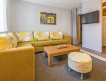 4 -sobni apartman 84 m2 na 2 etaže na 1. katu. Moderno i ukusno uređen: dnevni boravak/blagovaona s TV-om sa sat. prijemnikom. Izlaz na balkon. Otvorena kuhinja (4 ploče za kuhanje, pećnica, perilica za suđe, mikrovalna pećnica, el. aparat za kavu). Tuš/WC. Gornji kat: (kružne stepenice) 2 sobe, svaka soba s 1 franc. krevetom (160 cm, dužina 200 cm), klima uređajem. 1 soba s 1 franc. krevetom (140 cm, dužina 200 cm). Tuš/WC. Balkon 9 m2. Balkonski namještaj. Na raspolaganju: perilica za rublje, glačalo, sušilo za kosu. Internet (wireless LAN [WLAN], besplatan).- postrojenja