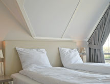 "Oesterdam Deluxe 8", 5 -sobna vila 212 m2. Komforno uređena: predsoblje s odv. WC-om. Dnevni boravak s stolom za blagovanje i TV-om (plosnatim TV ekranom), radiom i CD-om. 1 bračna soba s 2 kreveta, umivaonikom i tušem. Soba za prtljagu. Otvorena kuhinja (4 ploče za kuhanje, perilica za suđe, kuhalo za vodu, el. aparat za kavu, kombinirana mikrovalna pećnica). Grijanje. Gornji kat: 3 bračne sobe s kosim stropom, svaka soba s 2 kreveta i kadom/tušem/WC-om. Terasa. Garnitura za sjedenje. Na raspolaganju: perilica za rublje. Internet (wireless LAN [WLAN], besplatan). Parking uz kuću. Dodatna informacija: kuća za nepušače. Protupožarni alarm.- Značajke smještaja