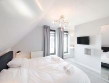 "Oesterdam Comfort Extra 8", 5 -sobna kuća 170 m2 na 2 etaže. Komforno uređena: predsoblje s odv. WC-om. Dnevni boravak/blagovaona s stolom za blagovanje i plosnatim TV ekranom. Izlaz na terasu. 1 bračna soba s 2 kreveta i tušem. Otvorena kuhinja (4 ploče za kuhanje, perilica za suđe, kuhalo za vodu, el. aparat za kavu). Grijanje. Gornji kat: 1 bračna soba s kosim stropom s 2 kreveta, tušem i plosnatim TV ekranom. 2 bračne sobe s kosim stropom, svaka soba s 2 kreveta. Tuš, 2 x odv. WC, duplim umivaonikom. Terasa. Garnitura za sjedenje. Na raspolaganju: Internet (wireless LAN [WLAN], besplatan). Parking (3 automobila) uz kuću. Dodatna informacija: kuća za nepušače. Protupožarni alarm.- postrojenja