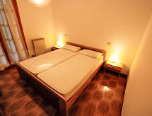 4 -sobni apartman 80 m2 na 1. katu. Objekt pogodan za 6 + 2 djece. Svijetlo, svrsishodno i komforno uređen: dnevni boravak/blagovaona s 1 kaučem za 2 osobe i TV-om. Izlaz na terasu. 1 soba s 1 bračnim krevetom. 1 soba s 3 kreveta. 1 soba s 1 krevetom. Kuhinjska niša (4 ploče za kuhanje, mikrovalna pećnica). Kada/bidet/WC, odv. WC. Klima uređaj (uz doplatu). Pogled na vrt. Na raspolaganju: perilica za rublje. Parking (1 automobil). Dodatna informacija: kuća za nepušače. 1 kućni ljubimac / pas dozvoljen.- postrojenja