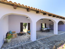 "Oliviola", 7 -sobna kuća 250 m2, u prizemlju. Prostrano, komforno i ukusno uređena: dnevni boravak s stolom za blagovanje i TV-om sa sat. prijemnikom. Izlaz u vrt. 3 bračne sobe, svaka soba s tušem/bidetom/WC-om i klima uređajem. Izlaz na mjesto za sjedenje u vrtu. 1 soba s 2 kreveta, tušem/bidetom/WC-om i klima uređajem. Izlaz na mjesto za sjedenje u vrtu. Otvorena kuhinja (pećnica, perilica za suđe, 6 plamena za kuhanje, toster, kuhalo za vodu, mikrovalna pećnica, zamrzivač, el. aparat za kavu). Klima uređaj (uz doplatu). Gornji kat: dnevno-spavaća soba s 1 kaučem za 2 osobe. Izlaz na mjesto za sjedenje u vrtu. 1 bračna soba s tušem/bidetom/WC-om i klima uređajem. Kuhinjska niša (pećnica, 4 plamena za kuhanje, zamrzivač) s malim stolom za blagovanje. Velika vrtna terasa (natkrita), vrt. Garnitura za sjedenje, vrtni roštilj (prijenosni). Lijep pogled na krajolik. Na raspolaganju: perilica za rublje, visoka dječja stolica, dječji krevetić (uz doplatu). 1 kućni ljubimac / pas dozvoljen. Zasebne stambene jedinice nisu interno povezane. U slučaju boravka manjeg broja gostiju od maksimalnog kapaciteta objekta, pomoćni objekt neće biti na raspolaganju. IUN:Q2759- postrojenja