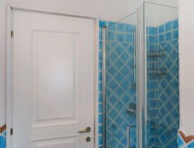 6 -sobna kuća 190 m2 na 2 etaže. Komforno i udobno uređena: veliki dnevni boravak/blagovaona s TV-om sa sat. prijemnikom, plosnatim TV ekranom i klima uređajem. Izlaz u vrt. 1 bračna soba s tušem/bidetom/WC-om. 1 bračna soba s tušem/WC-om. Kuhinjska niša (4 ploče za kuhanje, pećnica, perilica za suđe, mikrovalna pećnica, zamrzivač). Odv. WC. Gornji kat: 1 velika bračna soba s kada/tuš/bidet/WC i klima uređajem. Izlaz na verandu. 1 bračna soba s klima uređajem. 1 bračna soba, bez ormara. Tuš/bidet/WC. Klima uređaj (uz doplatu). Terasa (natkrita), velika vrtna terasa (natkrita), vrt. Garnitura za sjedenje, vrtni roštilj, mjesto za sjedenje. Na raspolaganju: perilica za rublje, glačalo, sušilo za kosu.- Aktivnosti u blizini
