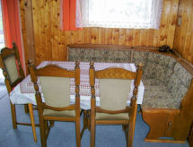 4 -sobna obiteljska kuća 70 m2 na 2 etaže. Veliki dnevni boravak s 1 kaučem za 1 osobu, švedskom peći, kutom za blagovanje i TV-om sa sat. prijemnikom. Izlaz na terasu. 1 soba s 1 bračnim krevetom. Kuhinja (4 ploče za kuhanje, perilica za suđe, kuhalo za vodu, mikrovalna pećnica, zamrzivač, el. aparat za kavu). Tuš, odv. WC. El. grijanje. Gornji kat: 2 sobe, svaka soba s 1 bračnim krevetom. Terasa. Garnitura za sjedenje. Lijep pogled na krajolik. Na raspolaganju: Internet (wireless LAN [WLAN], besplatan). Dodatna informacija: apartman za nepušače. 2 kućna ljubimca / psa dozvoljena.- postrojenja