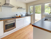2 -sobna obiteljska kuća. Prostrano i svijetlo, komforno i ukusno uređena: otvoreni dnevni boravak s TV-om, plosnatim TV ekranom i DVD-om. 1 soba s 2 kreveta. 1 bračna soba s 1 bračnim krevetom. Otvorena kuhinja (4 ploče za kuhanje, pećnica, mikrovalna pećnica, zamrzivač) s stolom za blagovanje. Kada/tuš/WC. Grijanje. Garnitura za sjedenje. Lijep pogled na vrt. Na raspolaganju: perilica za rublje, sušilica. Internet (wireless LAN [WLAN], besplatan). Dodatna informacija: kuća za nepušače. 2 kućna ljubimca / psa dozvoljena.- Značajke smještaja