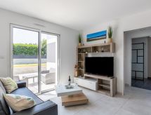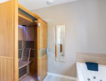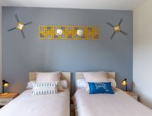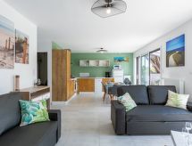 "Palet Breton", 4 -sobna kuća 80 m2. Svijetlo, komforno i moderno uređena: dnevni boravak 40 m2 s stolom za blagovanje i TV-om (plosnatim TV ekranom). Izlaz na terasu. 1 soba s 1 franc. krevetom (160 cm, dužina 200 cm). 1 soba s 2 kreveta (90 cm, dužina 200 cm). Otvorena kuhinja (pećnica, perilica za suđe, 4 staklokeramičke ploče za kuhanje, toster, kuhalo za vodu, mikrovalna pećnica, zamrzivač, el. aparat za kavu). Tuš/WC, odv. WC, duplim umivaonikom, hidromasažnom kadom, Sauna. El. grijanje. Terasa 20 m2, prema jugozapadu. Garnitura za sjedenje, ležaljke (4). Na raspolaganju: perilica za rublje, sušilica, sauna, glačalo, visoka dječja stolica. Dodatna informacija: kuća za nepušače. 1 kućni ljubimac / pas dozvoljen. Protupožarni alarm. Ponuda od strane fizičke osobe u skladu s člankom 155, IV, CGI.- postrojenja