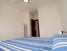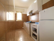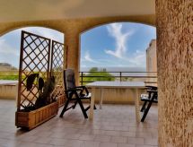 3 -sobni apartman 60 m2 na 1. katu. Jednostavno i svrsishodno uređen: dnevni boravak/blagovaona s 1 kaučem za 1 osobu, 1 krevetom na izvlačenje i TV-om (plosnatim TV ekranom), klima uređajem. Izlaz na balkon. 1 bračna soba s ventilatorom. 1 soba s 1 kaučem za 1 osobu, 1 krevetom na izvlačenje i ventilatorom. Kuhinjska niša (4 ploče za kuhanje, zamrzivač). Tuš/bidet/WC. Mali balkon 2 m2, terasa 13 m2 (natkrita). Garnitura za sjedenje. Prekrasan pogled na more. Na raspolaganju: sušilo za kosu. Internet (wireless LAN [WLAN], besplatan).
