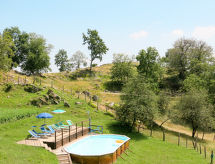 "Paradiso II", 3 -sobna kuća 60 m2 na 2 etaže. Renovirana, jednostavno i rustikalno uređena: dnevno-spavaća soba s 1 kaučem za 2 osobe, otvorenim kaminom, stolom za blagovanje i TV-om sa sat. prijemnikom. Otvorena kuhinja (4 ploče za kuhanje, pećnica, zamrzivač, el. aparat za kavu). Gornji kat: (strme stepenice) 1 soba s 1 franc. krevetom (160 cm). 1 soba s 1 x 2 kreveta na kat. Tuš/WC. Grijanje, grijanje na plin. Vrtna terasa. Garnitura za sjedenje. Panoramski pogled. Na raspolaganju: visoka dječja stolica, dječji krevetić. Internet (wireless LAN [WLAN], besplatan). Dodatna informacija: apartman za nepušače. Najviše 1 kućni ljubimac / pas dozvoljen.- postrojenja