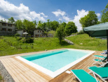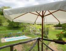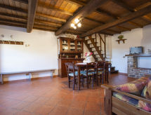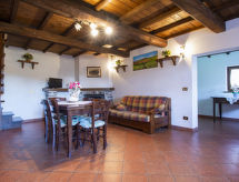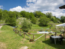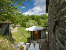 Rustikalna ladanjska kuća "Paradiso", 950 m n.m., zasebna, okružena drvećem i livadama. 2 kuće u turističkom naselju. 8 km od centra mjesta Fabbriche di Vallico, 45 km od centra mjesta Lucca, 63 km od centra mjesta Pisa, izolirano, povišeno mjesto, 73 km od mora, u zelenom, u šumi. Za zajedničko korištenje: parcela 10'000 m2, terasasti vrt (nije ograđen) - drveće, prirodni vrt, livada, bazen (10 x 5 m, 140 cm dubok, sezonska dostupnost: 29.Apr. - 15.Oct.). Terasa, roštilj. U kući: perilica za rublje (za zajedničko korištenje). 600 m dugački neravan, uski prilaz autom do 20 m od kuće (planinska cesta). Put sa stepenicama do kuće. Parking na parceli. Trgovina 8 km, supermarket 20 km, restoran 3.5 km, pješčana plaža "Lido di Camaiore" 73 km, vanjski bazen 20 km, natkriveni bazen 20 km. Pješačke staze od kuće 50 m.Interior