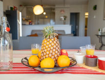 Ciboure/St Jean de Luz: Residence "Parc de Maldagora", na 2 kata. U četvrti Golf de la Nivelle, 1.5 km od mora, 1.5 km od plaže. Za zajedničko korištenje: bazen (7 x 15 m, 50- 180 cm dubok, sezonska dostupnost: 01.Jun. - 30.Sep.). Vanjski tuš. U kući: dizalo. Parking br. 181. Trgovina živežnim namirnicama 500 m, supermarket 800 m, trgovački centar 1.5 km, restoran 1 km, pekara 500 m, pješice 15 minuta do centra, autobusna postaja 300 m, željeznička postaja 2 km, pješčana plaža "Saint Jean de Luz" 1.5 km, uvala za kupanje 1.5 km. Golf teren (18 rupa), tenis 300 m. Ključeve ćete preuzeti u turističkoj agenciji Interhome u mjestu Saint Jean de Luz, 2 km.Interior