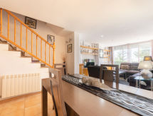 Tamarit 13 km od mjesta Tarragona: Lijepa, komforna kuća u nizu "Parc Escipions", na 3 kata. 63 kuće u turističkom naselju. U četvrti Tamarit - La Mora, izvan mjesta, 13 km od centra mjesta Tarragona, mirno, sunčano, povišeno mjesto u četvrti s vilama, 10 m od ruba šume, 500 m od mora, 500 m od plaže. Za zajedničko korištenje: vrt (ograđen) - travnjak, bazen okrugli (sezonska dostupnost: 23.Jun. - 15.Sep. bazen je otvoren u vremenu: 10:00-22:00). Bazen za djecu, vanjski tuš, dječje igralište. Za samostalno korištenje: mali vrt - travnjak, javni parking na ulici. Trgovina 1.4 km, trgovina živežnim namirnicama 600 m, supermarket 2.5 km, trgovački centar 2.5 km, restoran, bar 600 m, pekara 1.4 km, cafe 600 m, autobusna postaja "Passeig de l'Esquirol" 350 m, željeznička postaja "AVE Camp de Tarragona" 25 km, pješčana plaža "Tamarit" 600 m. Sportska lučica 6 km, marina 6 km, golf teren (19 rupa) 8 km, škola jedrenja na dasci 4 km, tenis 1 km, jahanje konja 11 km. U blizini: Port Aventura 25 km, Aquopolis 25 km, Parque de aventura Jungle Trek 50 m, Pista de básquet y fútbol 500 m. Pješačke staze: El Medol 3 km. Dodatna informacija: preporučljiv vlastiti prijevoz. Prikladno za obitelji, oprema za bebe na upit (uz doplatu). Vlasnik ne prihvaća grupe mladih. Mogućnost rezerviranja dodatnih smještajnih jedinica. Susjedstvo izrazito osjetljivo na buku. Očekuje se mir i pristojno ponašanje.Interior