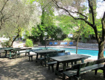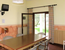 Veliki, jednostavni turistički kompleks "Parco del Garda". 248 kuća u turističkom naselju. Iznad mjesta Garda, 1 km od centra mjesta, povišeno mjesto na brežuljku, 900 m od jezera, 900 m od plaže, prijeći cestu. Za zajedničko korištenje: prirodno ostavljena parcela 11 ha - bilje i drveće, 2 bazena (40- 170 cm dubok, sezonska dostupnost: 01.Apr. - 31.Oct.). Nepravilan oblik bazena. WC uz bazen, bazen za djecu, vanjski tuš, tenis (4 x zemljana podloga) (uz doplatu), odbojka na pijesku, vrtna garnitura za sjedenje, dječje igralište. U kompleksu: recepcija, restoran, bar, pristup internetu, wireless LAN [WLAN], stolni tenis, trgovina, Grijanje se plaća u destinaciji. Parking na parceli. Šljunčana plaža 900 m. Golf teren (18 rupa) 4 km. U blizini: Peschiera del Garda 19 km, Malcesine 27 km, Verona 40 km. Dodatna informacija: oprema za bebe na upit (uz doplatu).Interior