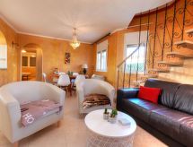 Urb Costa Zefir: Lijepa, komforna vila "Pasja". U samom mjestu 1 km od centra mjesta Miami-Platja, sunčano mjesto, 1.2 km od mora, 1.2 km od plaže. Za samostalno korištenje: parcela 620 m2 (ograđena), bazen pravokutni (10 x 4 m, 80- 190 cm dubok, sezonska dostupnost: 01.Jan. - 31.Dec.) s unutarnjim stepenicama. Pergola, vrtna garnitura za sjedenje. Bazen održava vlasnik/vrtlar Parking uz kuću. Supermarket 350 m, restoran 1.3 km, pekara 350 m, željeznička postaja "Hospitalet" 3 km, uvala za kupanje 1.9 km. Golf teren (13 rupa) 3 km. U blizini: parque Portaventura 28 km, parque acuático Aquopolis 31 km, parque Natural del Delta del Ebro 53 km, Tarragona 37 km, Reus 30 km, Barcelona 132 km. Dodatna informacija: preporučljiv vlastiti prijevoz. Grupe mladih samo na upit.Interior