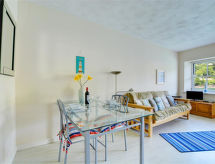 2 -sobni apartman u suterenu. Prostrano i svijetlo, komforno i ukusno uređen: otvoreni dnevni boravak s TV-om, plosnatim TV ekranom i DVD-om. 1 bračna soba s 1 bračnim krevetom. Kuhinja (4 ploče za kuhanje, pećnica, perilica za suđe, mikrovalna pećnica, zamrzivač) s stolom za blagovanje. Kada/tuš/WC. Grijanje. Mali balkon. Balkonski namještaj. Prekrasan pogled na rijeku. Na raspolaganju: Internet (wireless LAN [WLAN], besplatan). Dodatna informacija: kuća za nepušače.- Značajke smještaja
