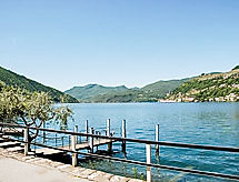 "Roncaioli", 5 -sobna kuća 140 m2 na 3 etaže, prema zapadu. Prostrano i svijetlo, djelomično spušten strop, rustikalno i udobno uređena: otvorena velika blagovaona s radiom, CD-om, muzičkom linijom i DVD-om. Mala niša za spavanje s 1 kaučem za 2 osobe (140 cm, dužina 200 cm), ventilatorom. Velika kuhinja/dn. boravak (pećnica, perilica za suđe, 4 staklokeramičke ploče za kuhanje, toster, kuhalo za vodu, el. aparat za kavu, Doze za mašinu za kavu (Nespresso) uz doplatu, set za fondue (sir)) s stolom za blagovanje, otvorenim kaminom. Tuš/WC. Grijanje. Gornji kat: veliki dnevni boravak s otvorenim kaminom (samo za dekoraciju), TV-om sa sat. prijemnikom i plosnatim TV ekranom. 2. Gornji kat: prolazna soba s 1 bračnim krevetom (2 x 80 cm, dužina 200 cm), ventilatorom. 1 bračna soba s 1 bračnim krevetom (2 x 80 cm, dužina 200 cm), ventilatorom. Tuš/WC. 3. Gornji kat galerija s 1 bračnim krevetom (1 x 160 cm, dužina 200 cm), ventilatorom. Izlaz na balkon. Mali balkon. Vrlo lijep pogled na jezero, planine i krajolik. Na raspolaganju: perilica za rublje, sušilica, visoka dječja stolica, dječji krevetić do 2 godine, sušilo za kosu. Internet (wireless LAN [WLAN], besplatan). Dodatna informacija: kuća za nepušače. Najviše 2 kućna ljubimca / psa dozvoljena. Vatrogasni aparat. 4213- postrojenja