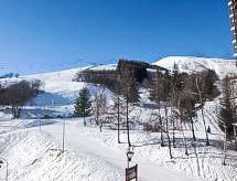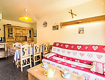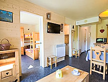 3 -sobni apartman 46 m2 na 2. katu, prema jugu. Svrsishodno i lijepo uređen: dnevni boravak/blagovaona s 1 kaučem za 2 osobe (130 cm, dužina 190 cm), TV-om (plosnatim TV ekranom). Izlaz na balkon, prema jugu. 1 soba s kliznim vratima s 1 franc. krevetom (140 cm, dužina 190 cm), TV-om i električnim roletnama. Izlaz na balkon, prema istoku. 1 soba s kliznim vratima s 1 x 2 kreveta na kat (90 cm, dužina 190 cm). Izlaz na balkon, prema jugu. Kuhinjska niša (pećnica, perilica za suđe, 4 staklokeramičke ploče za kuhanje, toster, mikrovalna pećnica, el. aparat za kavu, raclette roštilj). Kada, odv. WC. El. grijanje. Balkon 9 m2, prema jugu balkon 4 m2, prema istoku. Ležaljke (2). Pogled na planine i skijašku stazu. Na raspolaganju: perilica za rublje, sušilica, glačalo, sušilo za kosu. Internet (wireless LAN [WLAN], uz doplatu). Dodatna informacija: najviše 1 kućni ljubimac / pas dozvoljen. Protupožarni alarm.- postrojenja