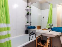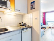 1 -sobni studio 22 m2 na 18. katu, prema sjeveru. Jednostavno i svrsishodno uređen: dnevni boravak/blagovaona s 1 krevetom (80 cm, dužina 190 cm), 1 kaučem za 2 osobe (1 x 130 cm, dužina 190 cm), 1 ležajem (80 cm, dužina 190 cm), TV-om (plosnatim TV ekranom). Izlaz na balkon, prema sjeveru. Kuhinjska niša (pećnica, 2 staklokeramičke ploče za kuhanje, toster, kuhalo za vodu, mikrovalna pećnica, el. aparat za kavu, Doze za mašinu za kavu (TASSIMO)). Kada/WC. El. grijanje. Parketni pod. Balkon 4 m2, prema sjeveru. Balkonski namještaj. Lijep pogled na dolinu. Na raspolaganju: sušilo za kosu. Internet (wireless LAN [WLAN], uz doplatu). Dodatna informacija: apartman za nepušače. Najviše 1 kućni ljubimac / pas dozvoljen. Protupožarni alarm.- postrojenja