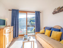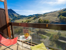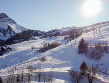 1 -sobni studio 28 m2 na 14. katu, prema jugu. Komforno i lijepo uređen: dnevni boravak/blagovaona s 1 krevetom na izvlačenje (2 osobe 2 x 80 cm, dužina 190 cm), TV-om (plosnatim TV ekranom). Izlaz na balkon, prema jugu. Niša za spavanje s zavjesom s 1 bračnim krevetom (140 cm, dužina 190 cm). Kuhinjska niša (2 ploče za kuhanje, mini pećnica, perilica za suđe, toster, kuhalo za vodu, mikrovalna pećnica, zamrzivač, el. aparat za kavu, Doze za mašinu za kavu (SENSEO), raclette roštilj). Kada, odv. WC. Grijanje. Parketni pod. Balkon 4 m2, prema jugu. Ležaljke (2). Pogled na skijašku stazu. Na raspolaganju: glačalo, sušilo za kosu. Internet (wireless LAN [WLAN], uz doplatu). Dodatna informacija: apartman za nepušače. Najviše 1 kućni ljubimac / pas dozvoljen. Protupožarni alarm. Ponuda od strane fizičke osobe u skladu s člankom 155, IV, CGI.- postrojenja