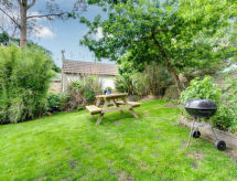 2 -sobna obiteljska kuća na 2 etaže. Prostrano i svijetlo, komforno i ukusno uređena: otvorena kuhinja (mini pećnica, pećnica, 1 staklokeramičke ploče za kuhanje, mikrovalna pećnica) s stolom za blagovanje, TV-om (plosnatim TV ekranom). Tuš/WC. Grijanje. Gornji kat: 1 bračna soba s 1 bračnim krevetom. Dnevni boravak s TV-om (plosnatim TV ekranom). Grijanje. Lijep pogled na vrt. Na raspolaganju: Internet (wireless LAN [WLAN], besplatan). Dodatna informacija: kuća za nepušače. 1 kućni ljubimac / pas dozvoljen.- postrojenja