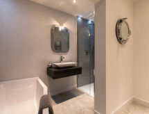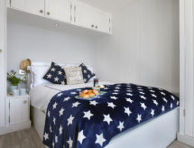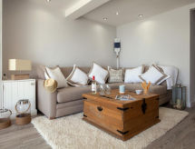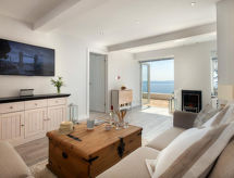 2 -sobni apartman u prizemlju. Prostrano i svijetlo, komforno i ukusno uređen: otvoreni dnevni boravak s TV-om, plosnatim TV ekranom, DVD-om i peći na drva. Izlaz na mjesto za sjedenje u vrtu. 1 bračna soba s 1 kaučem za 1 osobu i 1 bračnim krevetom. Otvorena kuhinja (4 ploče za kuhanje, pećnica, perilica za suđe, mikrovalna pećnica, zamrzivač) s stolom za blagovanje. Kada/tuš/WC. Grijanje. Garnitura za sjedenje. Lijep pogled na more. Na raspolaganju: perilica za rublje, sušilica. Internet (wireless LAN [WLAN], besplatan). Dodatna informacija: kuća za nepušače.- Značajke smještaja