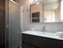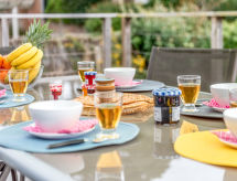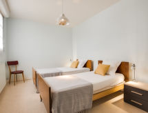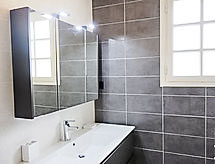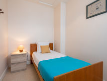 4 -sobna kuća u nizu 110 m2 na 2 etaže. Jednostavno i svrsishodno uređena: dnevni boravak/blagovaona s TV-om (plosnatim TV ekranom). Izlaz na terasu. Kuhinja (4 ploče za kuhanje, pećnica, mikrovalna pećnica, el. aparat za kavu). Kada, odv. WC. Gornji kat: 1 soba s 1 krevetom (90 cm). 1 soba s 1 franc. krevetom (1 x 140 cm, dužina 190 cm). 1 soba s 2 kreveta (90 cm, dužina 190 cm). Grijanje na plin. Terasa 30 m2. Garnitura za sjedenje, vrtni roštilj. Na raspolaganju: perilica za rublje, visoka dječja stolica. Internet (wireless LAN [WLAN], besplatan). Dodatna informacija: protupožarni alarm.- postrojenja