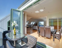 "Penthouse at Pointview", 3 -sobni apartman na 2. katu. Komforno i lijepo uređen: otvoreni dnevni boravak/blagovaona s digitalnim TV, plosnatim TV ekranom i DVD-om. 1 soba s 1 franc. krevetom, tušem/WC-om, TV-om i plosnatim TV ekranom. 1 soba s 2 kreveta. Otvorena kuhinja (4 ploče za kuhanje, pećnica, perilica za suđe, mikrovalna pećnica) s barom. Kada/WC. Grijanje na plin. 2 balkona. Lijep pogled na more i krajolik. Na raspolaganju: perilica za rublje. Internet (wireless LAN [WLAN]). Parking br. 5. Dodatna informacija: kuća za nepušače.- Značajke smještaja