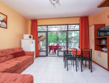 Fonyód: Jednostavna dvojna kuća. 600 m od jezera, u slijepoj ulici, u zelenom. Za zajedničko korištenje: vrt 500 m2 (ograđen). U kući: wireless LAN [WLAN]. Trgovina živežnim namirnicama 600 m, supermarket 2 km, restoran 300 m, autobusna postaja 200 m, željeznička postaja, plaža s travom 600 m. Dodatna informacija: U istoj kući iznajmljuju se dodatni apartmani. Objekt ref.br. HU8640.600.1 je smješten na istoj parceli.Interior