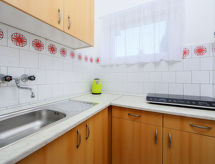"Petunia 1", 4 -sobna polovica dvojne kuće 80 m2 na 2 etaže. Svrsishodno uređena: dnevni boravak/blagovaona s stolom za blagovanje i TV-om sa sat. prijemnikom. Izlaz na terasu. 1 soba s 1 krevetom. Mala kuhinja (2 ploče za kuhanje, mikrovalna pećnica). Tuš, odv. WC. Gornji kat: 2 sobe, svaka soba s 2 kreveta. Velika terasa. Garnitura za sjedenje, vrtni roštilj (prijenosni). Na raspolaganju: dječji krevetić do 3 godine. Parking (ograđen, 2 automobila). MA20006520- postrojenja