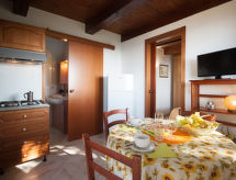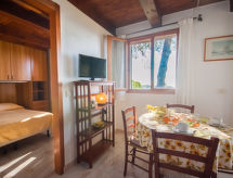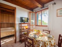 Mali turistički kompleks "Piccola Oasi", na 2 kata, okružen drvećem. 7 kuća u residenceu. 8 apartmana u residenceu. 1 km od centra mjesta Capoliveri, 5 km od centra mjesta Porto Azzurro, 13 km od centra mjesta Portoferraio, 800 m od mora. Za zajedničko korištenje: terasasti vrt, 10'000 m2 (ograđen) - bilje i drveće, prirodni vrt, jezerce. Vanjski tuš, terasa, vrtna garnitura za sjedenje, roštilj. U kompleksu: wireless LAN [WLAN]. Trgovina živežnim namirnicama 1.5 km, trajekt "Portoferraio" 13 km, pješčana plaža "Barabarca" 800 m šljunčana plaža "Zuccale" 800 m. Dodatna informacija: residence s električnom kapijom. Vlasnik živi na istoj parceli. Životinje u susjedstvu.Interior