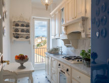 Komforni stambeni objekt na 3 kata. 6 apartmana u kući. U centru mjesta Riva Ligure 8 km od centra mjesta Sanremo, 2 km od centra mjesta Arma di Taggia, centralno mjesto, direktno na moru, direktan pristup na plažu. Javni parking na ulici. Trgovina živežnim namirnicama 50 m, supermarket 400 m, restoran 100 m, bar 50 m.Interior