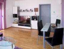 "Pinezic (ROJ117)", 2 -sobni apartman 45 m2 na 3. katu. Dnevni boravak/blagovaona s 1 kaučem za 2 osobe (135 cm, dužina 200 cm), TV-om sa sat. prijemnikom i klima uređajem. Izlaz na balkon. 1 soba s 1 bračnim krevetom i klima uređajem. Otvorena kuhinja (pećnica, perilica za suđe, 4 staklokeramičke ploče za kuhanje, toster, kuhalo za vodu, mikrovalna pećnica, zamrzivač, el. aparat za kavu). Tuš/WC. Balkon 3 m2. Balkonski namještaj. Na raspolaganju: perilica za rublje, glačalo. Internet (wireless LAN [WLAN], besplatan). Dodatna informacija: kuća za nepušače.- postrojenja