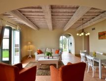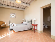 Vrlo lijepi, komforni residence "Cignella Resort", okružen drvećem, poljima i vinogradima. 13 apartmana u residenceu. 3 km od centra mjesta Trequanda, izolirano, sunčano, povišeno mjesto, u zelenom. Za zajedničko korištenje: parcela (ograđena), veliki vrt bilje i drveće, bazen ograđen (10 x 12 m, sezonska dostupnost: 01.May. - 15.Oct. bazen je otvoren u vremenu: 08:00-19:00) s unutarnjim stepenicama. Bazen za djecu, vanjski tuš, mjesto za sjedenje, pergola, terasa, vrtna garnitura za sjedenje, roštilj. Bazen održava vlasnik/vrtlar. U kući: recepcija, sala za doručak, prostorija za druženje masaža (uz doplatu). Promjena posteljine - 1 puta tjedno. Promjena ručnika - 1 puta tjedno. Čišćenje apartmana moguće (uz doplatu). Doručak može (uz doplatu). Transfer s aerodroma (uz doplatu). 1 km dugački neravan prilaz autom. Parking na parceli. Trgovina 3 km, trgovina živežnim namirnicama 3 km, supermarket 10 km, trgovački centar 10 km, restoran 3.5 km, autobusna postaja 1.5 km, željeznička postaja "Foiano della Chiana" 22 km, termalno kupalište "Rapolano Terme" 30 km, jezero za kupanje "Trasimeno" 30 km. Golf teren (9 rupa) 17 km. U blizini: Pienza 13 km, Montepulciano 14 km, Montalcino 32 km, Cortona 39 km, Arezzo 48 km, Siena 49 km. Poznata jezera u blizini: Trasimeno 30 km, Chiusi 35 km. Dodatna informacija: radno vrijeme recepcije 09:00-18:00 sati. Prikladno za obitelji, oprema za bebe (uklj.), babysitting (uz doplatu). Prikladno za evente. Moguće je na upit organizirati transfer od aerodroma do objekta. Dodatna informacija: Moguć iskrcaj i ukrcaj prtljage uz kuću. Nadzor 24 h. Residence s električnom kapijom. Sve kuće/apartmani su individualno opremljeni.Interior