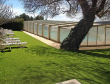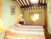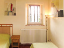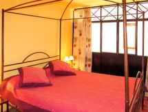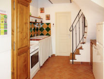 "Terres Ste Hilaire - Pistachier (OLL105)", 4 -sobna polovica dvojne kuće 85 m2 na 3 etaže. Ukusno uređena: dnevni boravak s otvorenim kaminom, stolom za blagovanje i TV-om sa sat. prijemnikom. Izlaz na terasu. Otvorena kuhinja (4 ploče za kuhanje, pećnica, perilica za suđe, toster, mikrovalna pećnica, zamrzivač, el. aparat za kavu). Tuš/WC, duplim umivaonikom. Gornji kat: 1 soba, prozor prema dnevnom boravku s 1 franc. krevetom (160 cm). 1 soba s 2 kreveta (80 cm). 2. Gornji kat: 1 soba s kosim stropom s 2 kreveta (80 cm), tušem. Odv. WC. Grijanje. Drveni pod. Lijep pogled na krajolik. Na raspolaganju: Internet (wireless LAN [WLAN], besplatan). Dodatna informacija: protupožarni alarm.- postrojenja