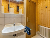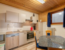 "Pistenblick klein", 2 -sobni apartman 60 m2, u prizemlju. Svrsishodno i udobno uređen: predsoblje. Dnevno-spavaća soba s 1 kaučem za 2 osobe i TV-om sa sat. prijemnikom. 1 soba s 1 bračnim krevetom (140 cm, dužina 200 cm). Kuhinja (pećnica, perilica za suđe, 4 staklokeramičke ploče za kuhanje) s stolom za blagovanje. Kada/WC. Pogled na planine. Na raspolaganju: Internet (wireless LAN [WLAN], besplatan). Parking uz kuću. Dodatna informacija: prikladno za obitelji. Apartman za nepušače. Protupožarni alarm.- postrojenja