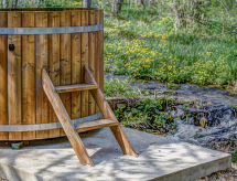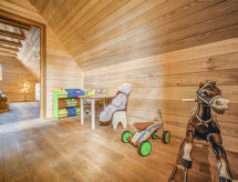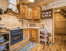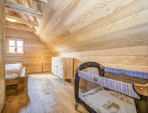 3 -sobni chalet 62 m2 na 2 etaže, prema sjeveru. Dnevni boravak/blagovaona 22 m2 s 1 kaučem za 2 osobe (135 cm, dužina 200 cm), TV-om (plosnatim TV ekranom), peći na drva i klima uređajem. Otvorena kuhinja (pećnica, 4 staklokeramičke ploče za kuhanje, zamrzivač). Tuš/WC. Grijanje na drva. Potkrovlje predsoblje s klima uređajem. 1 soba s kosim stropom, visina stropa 120 - 250 cm s 1 bračnim krevetom (2 x 90 cm, dužina 200 cm). 1 soba s kosim stropom, visina stropa 120 - 250 cm s 1 franc. krevetom (160 cm, dužina 200 cm). Na raspolaganju: drvo (uklj.). Internet (wireless LAN [WLAN], besplatan). Maks. popunjenost: 4 odraslih, 2 djece do 12 godina.- postrojenja
