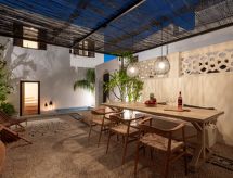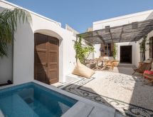 "Plumeria", 4 -sobna vila 120 m2 na 2 etaže. Prostrano i svijetlo, lijepo i moderno uređena: otvoreni dnevni boravak s TV-om sa sat. prijemnikom (plosnatim TV ekranom), radiom. Izlaz u vrt, na bazen. 1 otvorena bračna soba s 1 bračnim krevetom. Otvorena kuhinja (pećnica, perilica za suđe, 4 staklokeramičke ploče za kuhanje, toster, kuhalo za vodu, mikrovalna pećnica, el. aparat za kavu). Tuš/WC. Klima uređaj. Gornji kat: (stepenice bez rukohvata) 2 bračne sobe, svaka soba s 1 bračnim krevetom i tušem/WC-om. Klima uređaj. Na raspolaganju: perilica za rublje, sef, glačalo, sušilo za kosu. Internet (wireless LAN [WLAN], besplatan). 00000884475- postrojenja