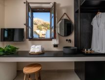 Moderna, lijepa vila "Plumeria", na 2 kata. U zaseoku Lindos, sunčano mjesto, 800 m od mora, 800 m od plaže. Za samostalno korištenje: lijepi, njegovani terasasti vrt - cvijeće i drveće, bazen pravokutni (4 m2, 90 cm dubok, sezonska dostupnost: 01.Apr. - 30.Nov.). Roštilj. Trgovina živežnim namirnicama, supermarket, restoran, bar, pekara, cafe 200 m, pješčana plaža "Lindos" 2.3 km šljunčana plaža "Agios Pavlos" 800 m. Golf teren (18 rupa) 32.4 km, jahanje konja 37.9 km. U blizini: Valley of the Butterflies 45.3 km, Lindos Acropolis 500 m, Asklipio Castle 21.3 km, Palace of the Grand Master of Knights 50.9 km, Medieval City of Rhodes 49.9 km, Waterpark Rhodes 40.3 km. Dodatna informacija: preporučljiv vlastiti prijevoz. Prikladno za obitelji, oprema za bebe na upit (uklj.). Grupe mladih samo na upit.Interior